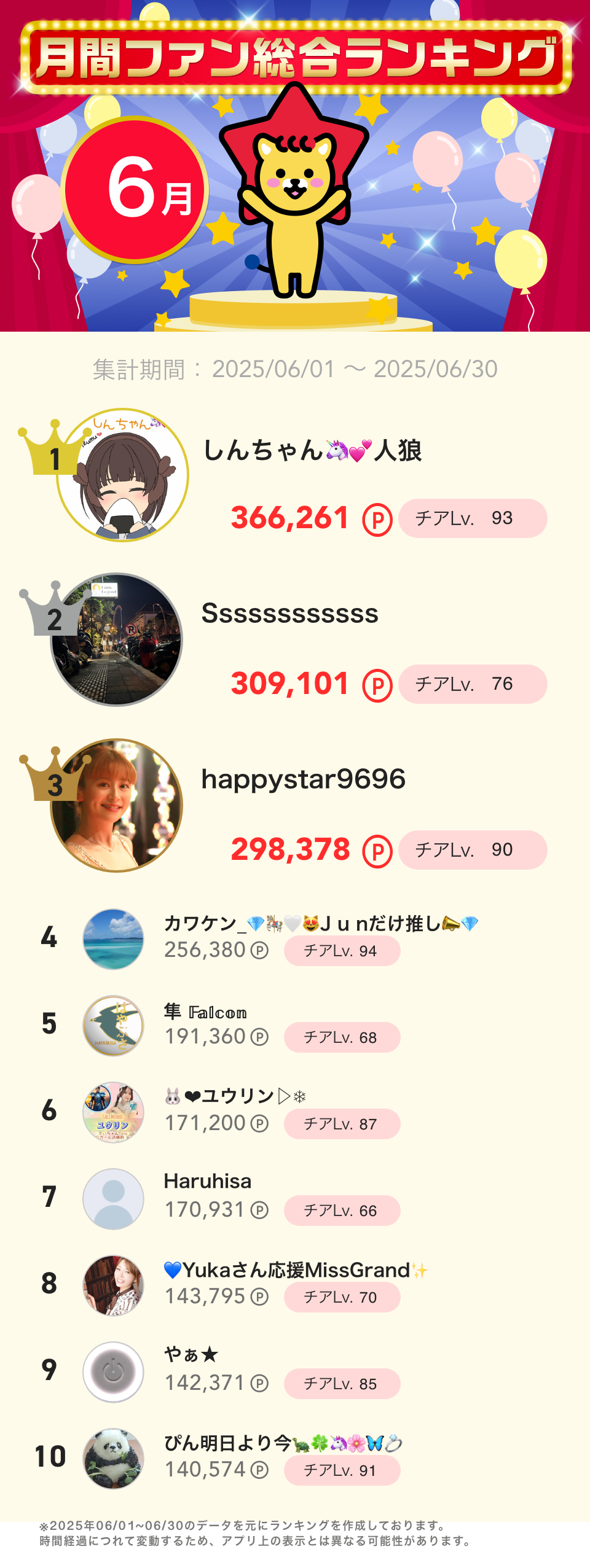 6月度月間ファン総合ランキング👑