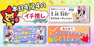 イベント情報 皆でフリーコインをGetしよう💪vol.553 2026年4月27日 4/24 おすすめ⭐️開催中・開催予定イベント情報一覧📣 2026年4月24日 新創刊ファッション誌【Lit life】モデルオーディション 第2弾 2026年4月23日 5月週替わりチャレンジ💫 ワタシの『推し』ゴト🫶🏻💕&フォトムービーコンテスト🎞 2026年4月23日 皆でフリーコインをGetしよう💪vol.552 2026年4月23日 皆でフリーコインをGetしよう💪vol.551 2026年4月20日 4/17 おすすめ⭐️開催中イベント情報一覧📣 2026年4月17日 皆でフリーコインをGetしよう💪vol.550 2026年4月16日 ピクニック動画を投稿しよう🧺vol.3 2026年4月15日 自由に動画を投稿しようvol.198 2026年4月15日 ガチイベ待機中にファンを増やしちゃおう!vol.30 2026年4月15日 5月18日は言葉の日🍀自分の言葉で伝えよう🫶vol.3 2026年4月15日 いつも応援ありがとう!vol.48 2026年4月15日 ファンとおしゃべりタイムvol.15 2026年4月15日 5月10日は母の日!ありがとうを伝えよう!vol.5 2026年4月15日 子供の頃の写真を投稿しようvol.7 2026年4月15日 5月生まれ集合!vol.6 2026年4月15日 緑をテーマにした動画vol.5 2026年4月15日 ゴールデンウィーク!mystaをゴールドで埋め尽くそう✊⭐️✨vol.3 2026年4月15日 皆でフリーコインをGetしよう💪vol.549 2026年4月13日 横浜国際映画祭 前夜祭男性MC出演権争奪オーディション|ホテルニューグランド開催 2026年4月10日 1 2 3 … 236 ›