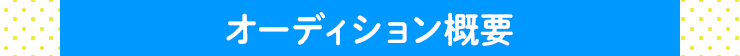 ※万が一、投稿された内容がオーディションテーマにそぐわないと事務局が判断した場合は、差し戻しの措置をとる可能性があります。