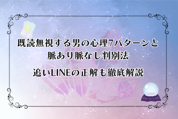 好きな男性から既読無視されて「嫌われたのかな…」と不安になっていませんか? 返信が来ないたびに「脈なしなの?」「追いLINEを送ったら重いと思われる?」「何日待てばいいの?」と悩み、スマホを何度も確認してしまうこともありますよね。 本記事では、... -