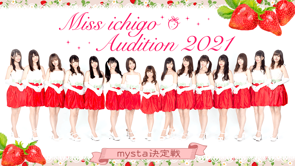 2020年4月3日 ミスいちご2021オーディション mysta枠決定戦 ※5/12 追記:決勝の特典について追記しました※6/4 追記:決勝の特典について追記しました※6/11 追記:決勝の特典について追記しました 🍓 ミスいちごとは 🍓 「ミスいちご」は、全国のいちごの消費拡大を目的に、全国各地のいちごの魅力をPRする「いちごのPRレディ」です。いちごのPR活動の他、ファッションショーや雑誌、テレビ番組など幅広く活動し、最前線で活躍するアイドルやモデルを多数輩出しています。 審査内容はこちら ミスいちご公式ページ 🍓 ミスいちごの活動 🍓 ミスいちごの活動をご紹介します! ミスいちご🍓活動概念図 ミスいちごの活動をご紹介します! ミスいちごの活動 ❤️Tokyo Walker掲載❤️ ❤️TV出演❤️日テレ『バゲット』『ヒルナンデス!』 フジテレビ『ホンマでっか!?TV』 AbemaTV他 ❤️雑誌出演❤️Ray ViVi TokyoWalker フォトテクニックデジタル ヤングジャンプ 他 ❤️ファッションショー出演❤️国内外大型ファッションショー各種 国内外ブランドプライベートショー各種 ❤️CM モデル出演❤️「ナースパワー」CM 「GU」CM 「Panasonic 」CM他 ❤️WEBメディア出演・取材❤️Y!ライフマガジン、OZmall ガジェット通信 ディズニー特集 With online他 ❤️ニュース掲載❤️ミスいちごが決定すると、毎年たくさんのニュースメディアが新たなミスいちごを紹介くださります。 次はあなたかも! ❤️いちごのPRレディ❤️私達の制服は「いちごのドレス」 全国のいちご産地にて、 公式レディとして様々なPR活動を行います! 🍓イベント詳細 書類選考:LINE登録後、プロフィールをお送り頂き書類審査。その後、所属ブロックのご連絡を致します。 予選:各ブロック上位50%が準決勝進出■各ブロック1位には準決勝でボーナスポイント10,000pt GET!また凖決勝前にmystaのTwitterとmystaアプリTOPに1週間掲載!準決勝:各ブロック上位50%が決勝進出!(ブロック数:5ブロック)■各ブロック1位には決勝でボーナスポイント10,000pt GET!また決勝前にmystaのTwitterとmystaアプリTOPに1週間掲載!決勝:各ブロック上位6名が最終面談進出!(ブロック数:1ブロック)■各ブロック上位4名が最終面談進出!→上位6名が最終面談進出!■各ブロック1位はTokyoWalkerに掲載!→上位2名がmodelpressに掲載!→6/20発売号をもって「Tokyo Walker」が休刊することが決定いたしました。現在、「Tokyo Walker」に代わる特典を検討しています。決定次第お知らせ致します。→今回の特典は「Tokyo Walker」の代案として、WEBサイト「modelpress」への掲載権とさせて頂きます。※参加者数が奇数の場合は、端数を切り上げます。(例:上位50%進出 参加者が9名の場合→5名が進出) 🍓キャスト特典 「ミスいちご2021」ファイナリストに選出(その後面談を経て、ミスいちご1名を選出) 「ミスいちご2021」主な活動内容・・・ 全国のいちごのPR活動 ファッションショーその他イベント出演 テレビや新聞など各種メディア出演 写真集のリリース 🍓イベント実施スケジュール まずはLINEからご応募お願いします。LINE応募受付期間:2020/4/8(水)15:00〜 2020/5/6(水)23:59 予選 5/8(金)21:00〜5/17(日)20:59 準決勝 6/1(月)21:00〜6/7(日)20:59 決勝 6/22(月)21:00〜6/28(日)20:59 🍓参加条件 ※LINEからご応募頂いた方のみ、動画の投稿が可能です。いちごが好きで、ファッションや美容、音楽、カルチャーに幅広く関心のある方中学生以上の女性2020年9月15日から1年間活動できる方※プロダクションの所属、その他のミスコンやキャンペーンガール、社会人、学生、その他職業と平行しての応募・活動が可能です。※18歳未満の方は、最終選考時に保護者の同意を確認させていただきます。※プロダクション所属の方は、許可を得てからご応募下さい。 動画テーマ 予選 :「いちごにまつわる動画🍓Part1」準決勝:「いちごにまつわる動画🍓Part2」決勝 :「自由に投稿しよう🍓」※同じ動画を複数週に投稿することはNGとします。※推奨となります。 🍓動画ルール ご自身の顔が分かるものに限ります。 🍓投稿ルール 動画の画角は9:16の縦型動画、サムネイルは1:1(480px以上)の正方形が必須です。テロップや編集などは基本的に投稿者様にお任せいたします。カラオケ店での撮影は不可となります。原盤権の処理がされていない音源利用、歌詞テロップの挿入は不可となります。同一人物が複数アカウントでイベントに参加した場合、イベントへの参加が取り消しとなります。過去にmystaに投稿したことのある動画の場合、差し戻し、非公開の対象となります。 🍓 エントリー方法 🍓 エントリーの受付は終了いたしました。沢山のご応募ありがとうござまいました。 注意事項 下記注意事項およびmysta利用規約、その他のルールを守って投稿しましょう。本イベントへの動画投稿およびチアに際し、mysta利用規約の遵守をお願いいたします。本イベントは株式会社リトルワールドの主催によるコンテストです。当該コンテストの一環としてmysta株式会社が運営するものであり、アップル社、グーグル社に