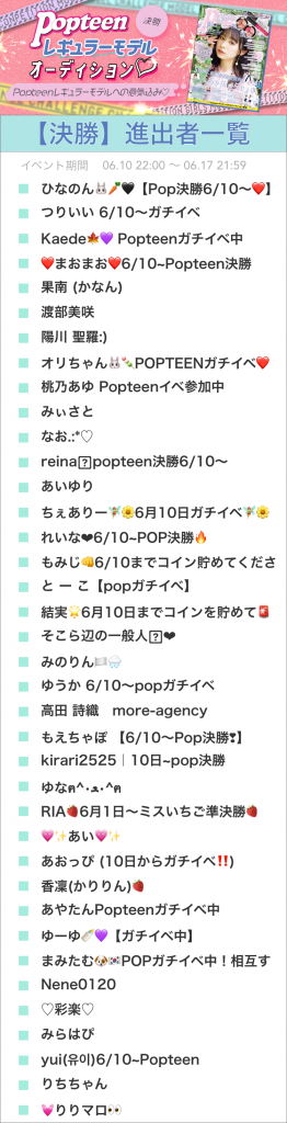 –Popteen編集部が出場者全員の中から1名を選出しレギュラーモデル最終審査に進出!