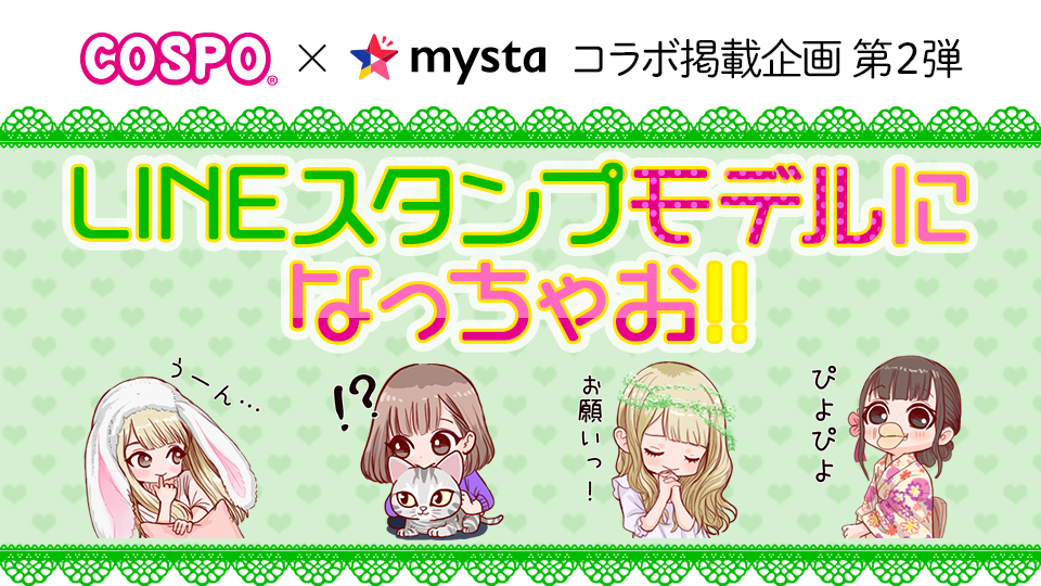 特典内容②:『COSPO』×『mysta』公式LINEスタンプ ストアメイン画像掲載