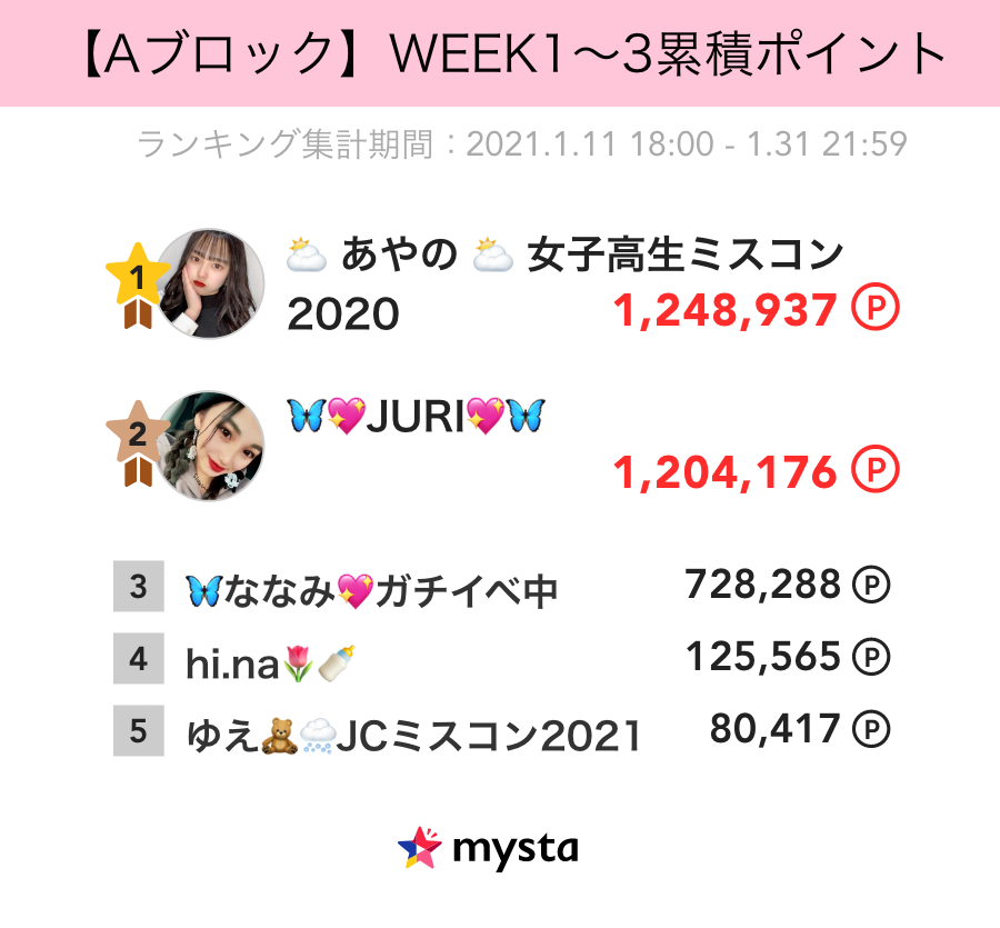 【各ブロック累積ランキング〜結果発表〜】女子高生ミスコン2020/JCミスコン2020エントリー者限定! 雑誌「Seventeen」誌面掲載権争奪バトル!