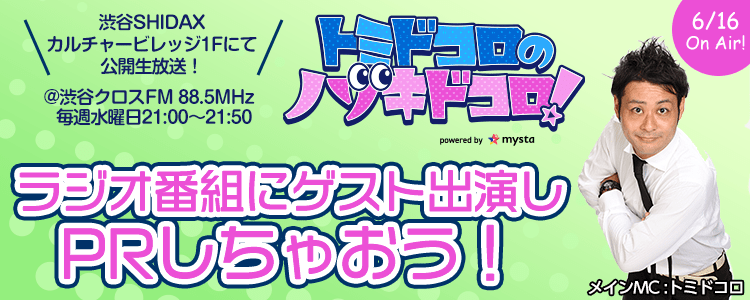 渋谷クロスFM(88.5MHz)で11月4日から毎週水曜日21:00~21:50にmystaの提供番組『トミドコロのノゾキドコロ!』の放送がスタート!