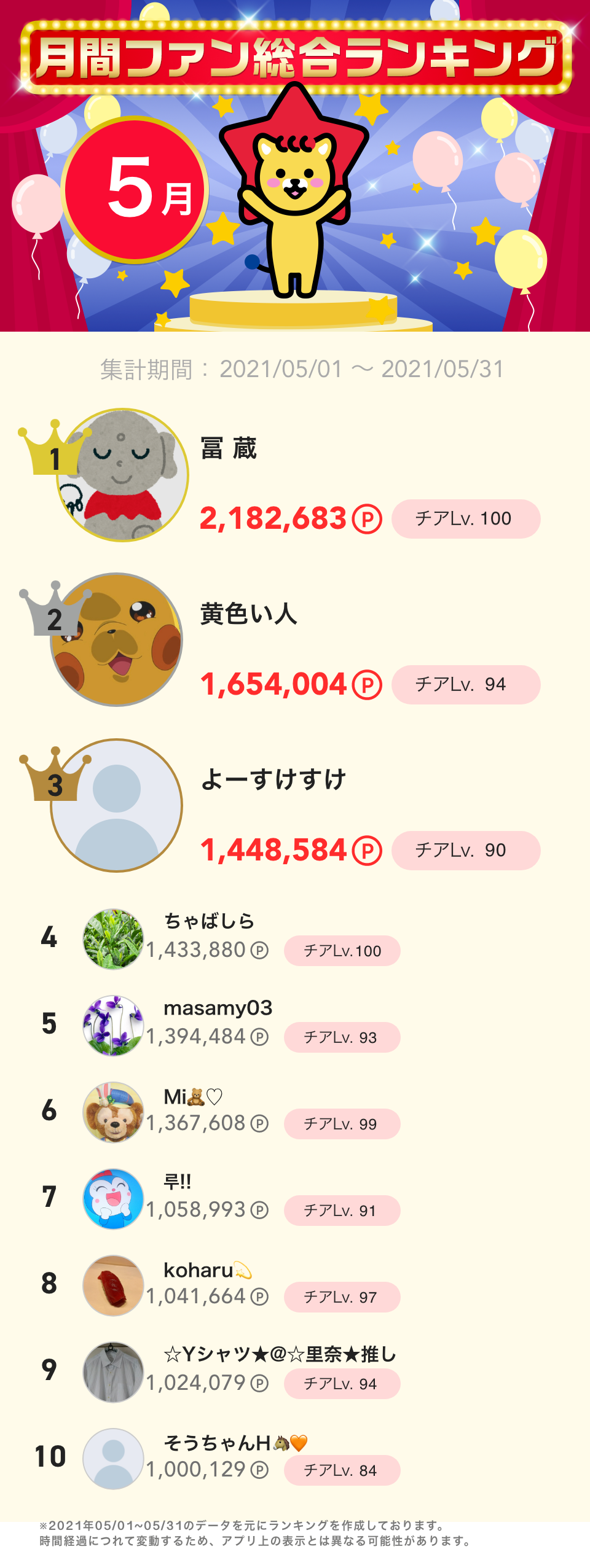 5月度月間ファン総合ランキング👑