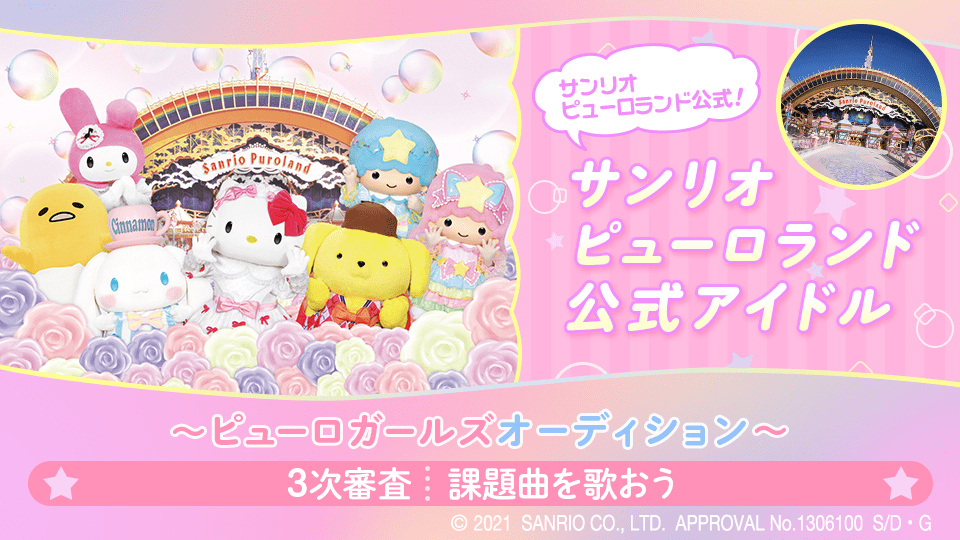 ④サンリオピューロランド内でご自身が撮影されたキャラクター写真を切り抜き/透過し、キャラクター画像化して使用することは不可となります。 - 歌唱はインスト音源を使用した歌唱、もしくはアカペラのどちらでも可能です。