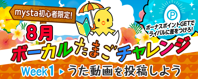 - イベント内容に記載されている事項を全て満たさずに動画を投稿した場合、mysta規約に違反した場合、またはmystaチームが不適切と判断した場合には、動画を差し戻しや非公開にする場合がございます。その際、イベント終了後であっても獲得ポイントは無効とし、特典の権利を無効とさせていただく可能性があります。