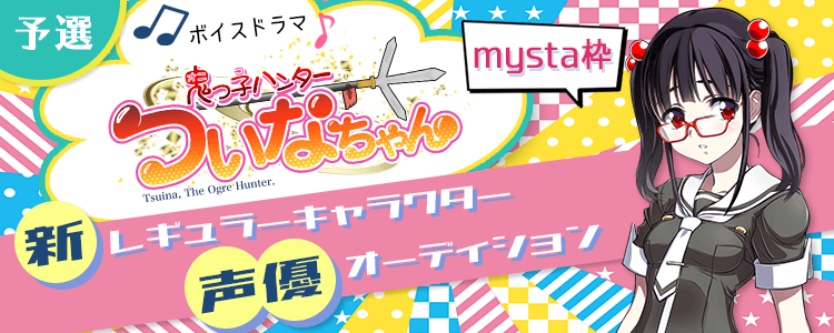 ボイスドラマ鬼っ子ハンターついなちゃんシリーズに登場する新キャラクターの声優オーディションmysta枠を開催!