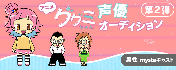 GYAO!で放送予定のショートアニメ「ググミちゃん」登場キャラクターの声優オーディション第2弾をmystaアプリで開催します!