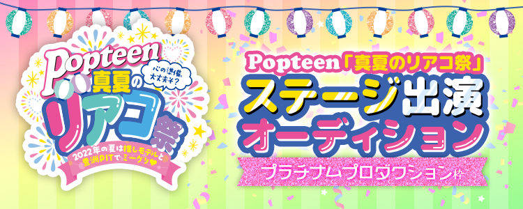 2022年7月26日(火)に開催されるPopteen主催のリアルイベント「真夏のリアコ祭」でファッションショーステージに出演する方をmystaで選出します❤