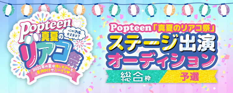 2022年7月26日(火)に開催されるPopteen主催のリアルイベント「真夏のリアコ祭」でファッションショーステージに出演する方をmystaで選出します❤