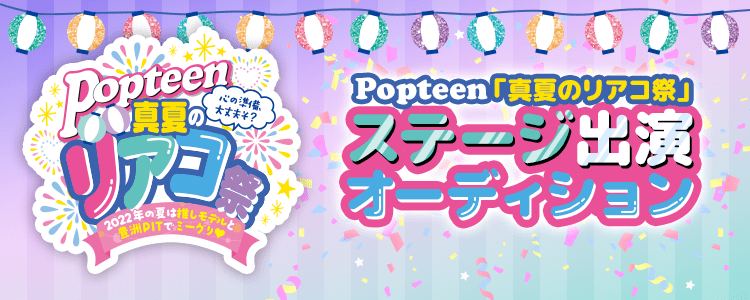 2022年7月26日(火)に開催されるPopteen主催のリアルイベント「真夏のリアコ祭」でファッションショーステージに出演する方をmystaで選出します❤