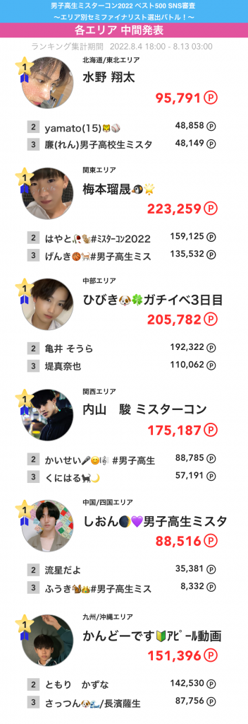 以上各エリアの累計ポイントランキング上位になった方がセミファイナリストに選出されます👀✨