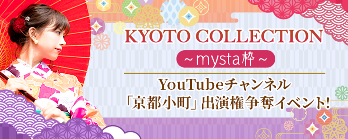 特典対象者:決勝ランキング1位の方。 ※YouTubeチャンネル「京都小町」出演は、mysta枠京都コレクション枠2名の共演となります。