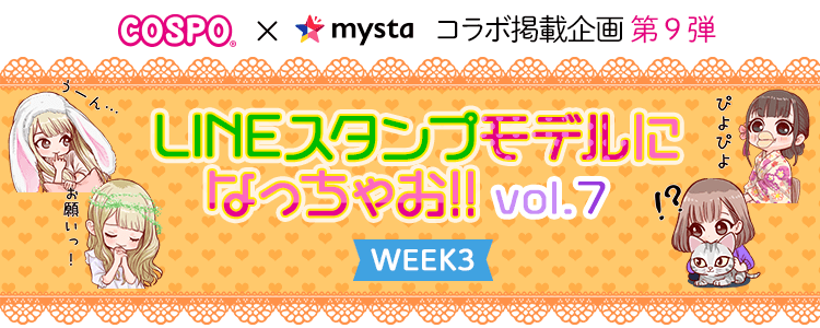 各WEEKでランキング1位になったキャストがモデルイラストとなった『COSPO』×『mysta』公式LINEスタンプになれます❣️頂いたお写真を元に2Dイラスト化!メッセージなども合わせて指定できます✨