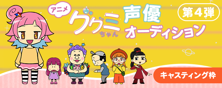 GYAO!で放送予定のショートアニメ「ググミちゃん」登場キャラクターの声優オーディション第4弾をmystaアプリで開催します!