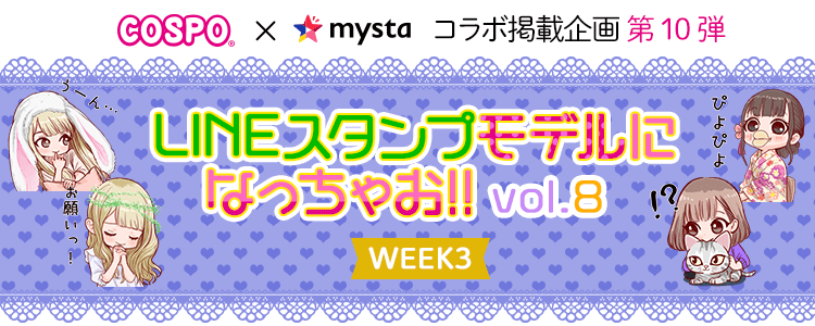 各WEEKでランキング1位になったキャストがモデルイラストとなった『COSPO』×『mysta』公式LINEスタンプになれます❣️