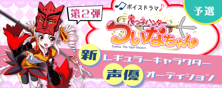 第2弾!ボイスドラマ「鬼っ子ハンターついなちゃん」新レギュラーキャラクター「小林小太郎」(通称:コタロー)役最終選考進出ができる権利を獲得!