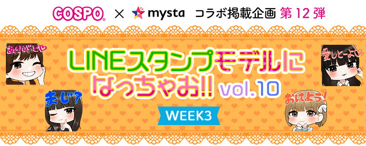 各WEEKでランキング1位になったキャストがモデルイラストとなった『COSPO』×『mysta』公式LINEスタンプになれます❣️