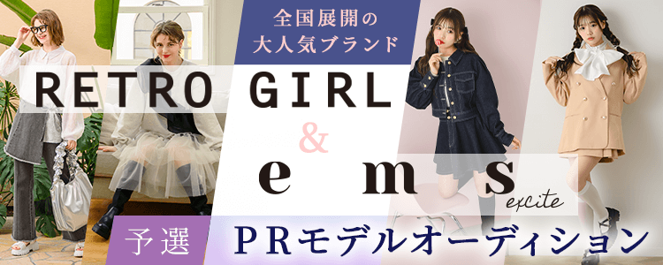 Instagramフォロワー数18万人越えの大人気アパレルブランド『RETRO GIRL』と、キュートでガーリーなスタイリングにSEXYさもプラス。トレンドアイテムをGOODプライスでご提案しふんわり可愛いMixカジュアルを楽しめる『ems excite』のPRモデルオーディション開催💖
