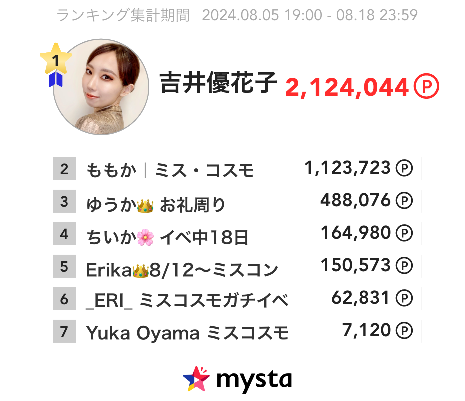 mysta審査累計ポイントランキング1位に輝いた方は…