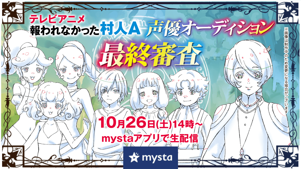 2024年10月26日(土)に開催した『報われなかった村人A、貴族に拾われて溺愛される上に、実は持っていた伝説級の神スキルも覚醒した』(以下、『報われなかった村人A』)主要キャラ声優オーディションの最終審査。選考結果を発表いたします。