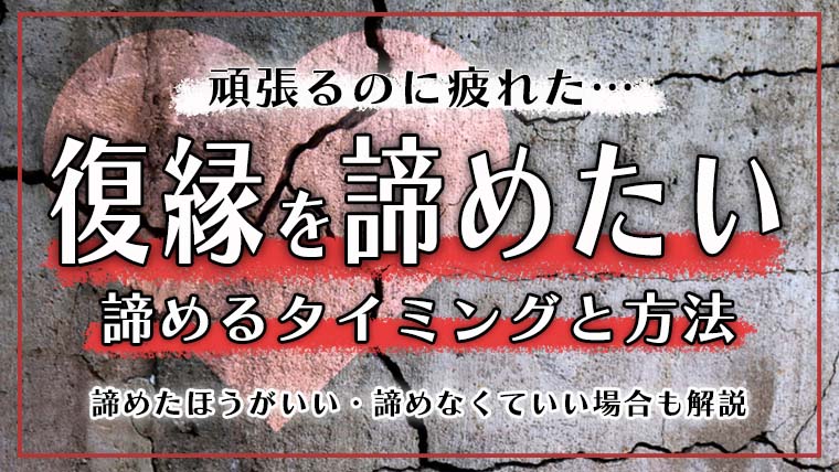 「彼を好きな気持ちはあるけど、もう諦めたい気持ちもある」と復縁に悩んでいませんか? 肉体的、精神的にも疲れてしまって、大好きだけど復縁を諦めたいと思うこともあるでしょう。 本記事では復縁を諦めたい理由、復縁を諦めるタイミング、復縁を諦めた... -