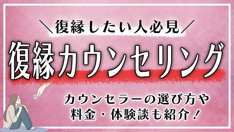 「復縁したいけど、あと一歩が踏みだせない」と悩んでいませんか? ひとで思い悩んでいるときは、復縁カウンセリングを利用してみるのがおすすめです。 本記事では復縁カウンセリングの特徴、復縁カウンセリングの料金、復縁カウンセリングで復縁した体験... -