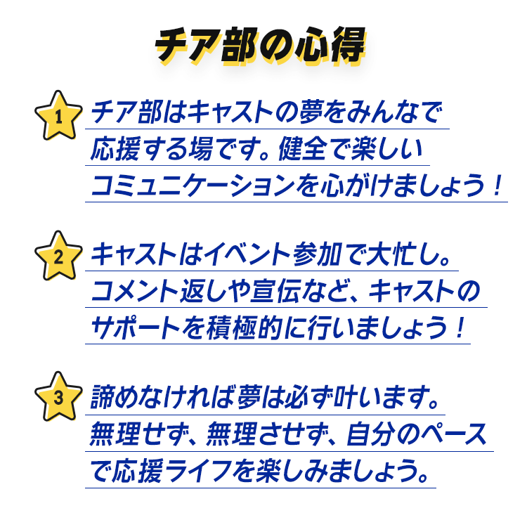 - キャストや副部長はエールチケットの消費せず、無制限でエールを送ることができます