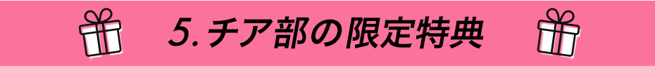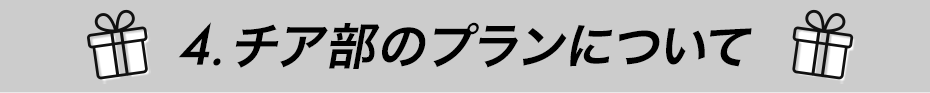 チア部には4つのプランがあり、プランによってさまざまな特典があります。プランごとの特典は以下のとおりで、入部時に特典が付与されます。