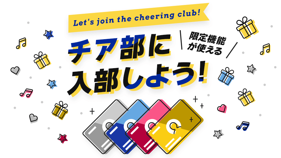 - 利用規約に違反する行為を行った場合、予告なく一部機能の利用制限またはチア部を退部させることがございます。利用制限または退部となった場合でも返金はされませんので予めご了承ください。