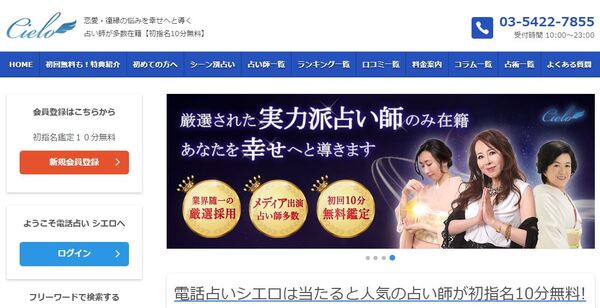 電話占いシエロは、在籍する占い師の質の高さや、アフターメールなどの手厚いサービスが評価されており、会員数150万人以上を誇る大手の電話占いサイトです。