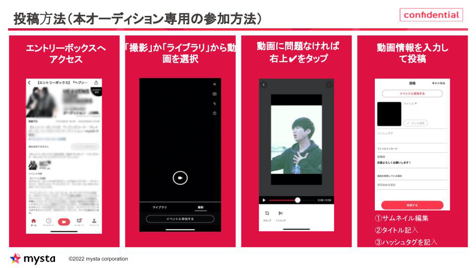 オーディションアプリ「mysta」上で行われる動画投稿審査です