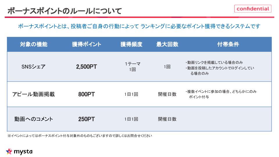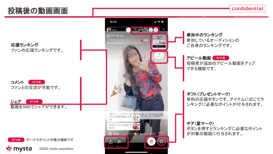 ●mystaでは動画を投稿し、その動画に集まった応援ポイントでランキングを生成します
