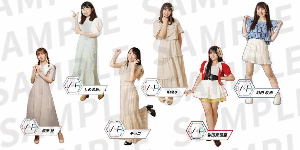 特典会内容について ・本特典会は2023/6/18〜6/24、mystaにて実施された「アイドルV×Rフェス#2 OPアクト出演権イベント」に紐づく特典会の実施となります。 ・実施される特典会は、「チェキ会」「アクリルスタンド販売」の2イベントとなります。 ・本特典会は当日現地販売のみの実施となります。 ・お支払いに関しては現金のみとなっております。 ・各商品にはそれぞれ数に限りがございます。 ・実施時間帯に関してはフェス本編の進行上、多少の変更が生じる事があります。 (フェス本編のタイムテーブルは、後日追っての公開をいたします) 【チェキ会】・実施時間帯:プレミアムキャストのオープンニングアクトステージの終了後、準備出来次第の開催となります。・価格:1,000円(税込)/枚・参加チェキ対象:本イベントを合格した5名のプレミアムキャスト・撮影要項: -トーク時間は撮影後サイン記入時の1分間となります。 -1ショット/2ショット同額のお値段となりますので、撮影時にスタッフへお知らせください。 -購入時の購入枚数制限はありませんが、撮影時には一枚撮影ごとに最後尾へお並びくださいます様お願いいたします。 -接触行為は禁止といたします。 -ポーズ等での過剰な要求はご遠慮ください。 【アクリルスタンド販売】 ・実施時間帯:上記「チェキ会」の販売時及び、フェス本編後半の時間帯にて、会場内にて「商品引換券」の販売をいたします。 商品のお引換えはフェス本編の終了後に、キャスト本人からの「お渡し会」を実施させていただきます。 チェキ会 時間帯:15:00〜15:50(予定) 場所:物販A 商品引換券販売 時間帯:19:50〜21:00(予定) 場所:当日お知らせ お渡し会 時間帯:21:00〜22:00 場所:当日お知らせ また、「お渡し会」への参加が困難な方には、「商品引換券」ではなく、商品をその場でお渡しすることも可能です。 ・商品内容:各キャスト個人ごとの全身入り「V×Rフェス限定アクリルスタンド」を販売いたします。(各キャスト1種) ・価格:2,000円(税込)/個 (7/7追記)・一度のお会計でお買い求め頂ける数は1個までとし、それ以上ご希望の場合は列に並び直していただきます。・プレミアムキャスト分のみ、お渡し会中も引換券を販売いたします。 特典会対象者について 篠原望 アクリルスタンドのみ販売 しののめ。 チョコ Kaho 岩田真理亜 彩田咲希 プレミアムキャスト チェキ会+アクリルスタンド販売 アクリルスタンド(全6種)/数量限定 「VRフェス#2」TOPぺ戻る
