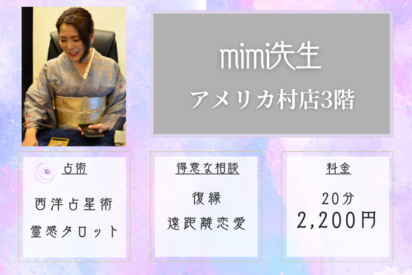 mimi先生は、霊感タロットや西洋占星術などさまざまな角度から悩みを解決をしてくれると評判が高い占い師。