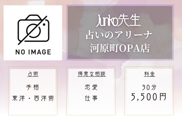 ![]() ![]() Junko | 占いのアリーナ 河原町OPA店 手相・タロット・四柱推命 | 20分3,300円 30分5,500円 | 京都河原町駅から徒歩1分 |