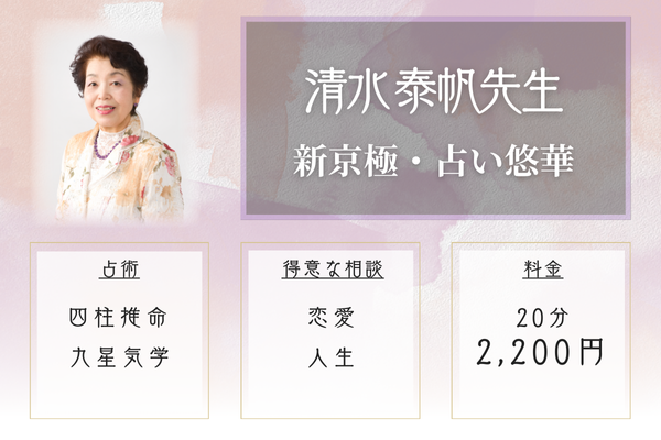 ![]() ![]() 清水 泰帆 | 新京極・占い悠華 四柱推命・手相・九星気学 | 20分2,000円 総合鑑定 | 京都河原町駅から徒歩3分 |