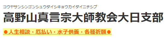 | 詳細HP | 高野山真言宗大師教会大日支部(iタウンページ) |