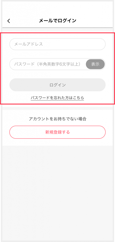URLから事前に登録したメールアドレスとパスワードでアプリにログインしよう。
