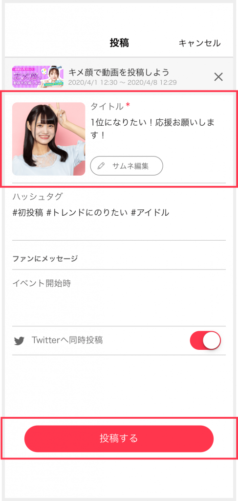 ⑥タイトルやサムネイルを編集し、「投稿する」ボタンから投稿しよう。これで本登録の完了です⭐️