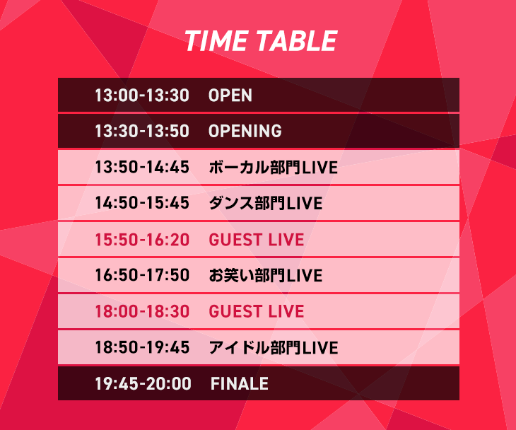 新人タレント発掘アプリ「mysta」で勝ち上がった、ボーカル、アイドル、お笑い、ダンス、インフルエンサーのキャストたちが特典を賭けてライブパフォーマンス!ユーザーの皆さんの投票によって選ばれたファイナリストが、審査員とのマッチング(特典獲得)を賭けた最終ジャッジに進みます!