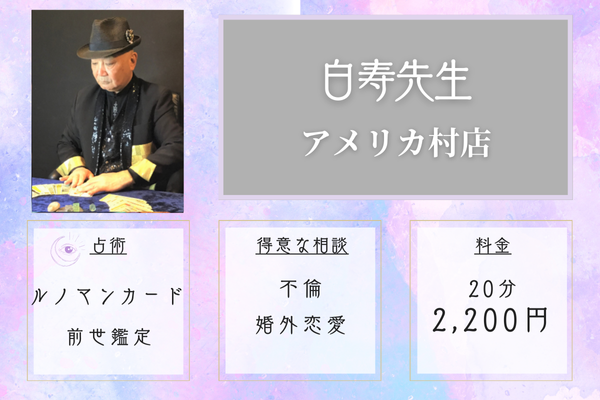 大阪エリアで実績のある先生は、アメリカ村店と心斎橋店を軸に出演する傾向があります。対面と電話の両方の鑑定に対応しているので、希望する時間帯や相談ジャンルに合わせて選択しやすいです!