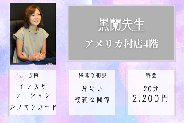 相手の気持ちが見えない、曖昧な関係が続くといった恋愛の悩みにカードで深くアプローチしてくれる黒蘭先生。
