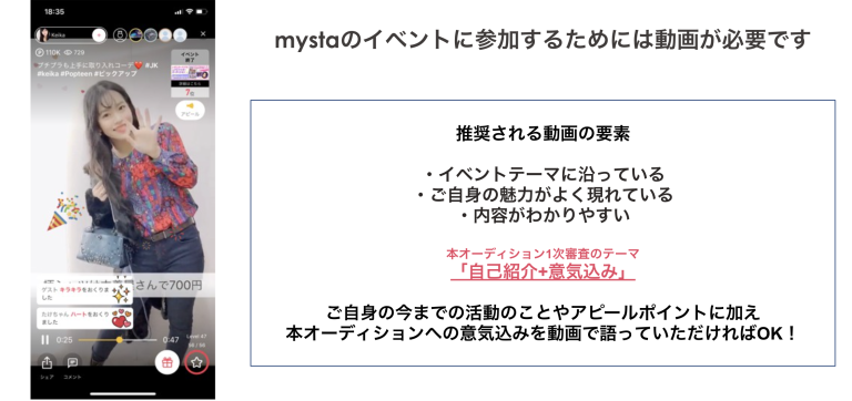 - 参加者はオーディションごとに定められたテーマに沿って動画を作成、投稿