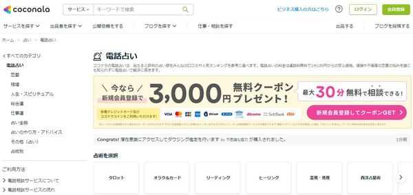 | 公式サイト | 電話占いココナラ |