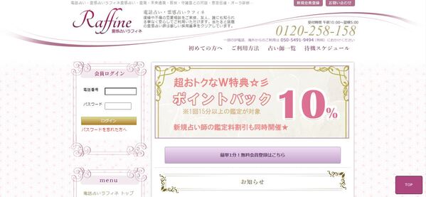 さらに、ラフィネでは、特定の占い師の鑑定をお得に受けられたり、鑑定時間に応じてポイントが換算されたりとキャンペーンも開かれています。