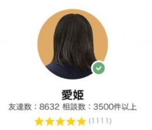 愛姫先生はチャットだと返信が遅いので、「占いに時間がかかる先生なのかなー」と思っていました。ですが、お礼のやりとりは非常に早かったので使う言葉を選んでくれているのだと分かりました。愛姫先生の鑑定で「え…」と思うような言葉遣いはされたことがないので本当に優しい先生なんだなと思います。先生は、口コミやレビュー評価をよく書いている人を選ぶといったことをしないので信頼できます。(31歳 女性)