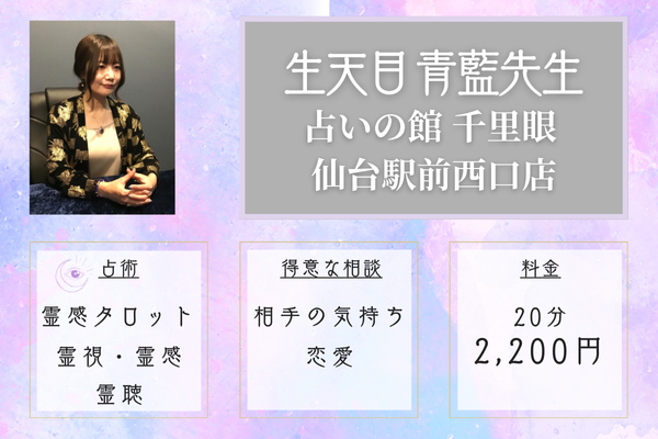 千里眼は国内最大級の占い師在籍数を誇る占い館で、仙台には「仙台駅前店」「仙台駅前西口店」「仙台中央店」の3店舗を展開しています。